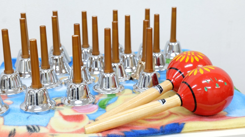 キーボード、ハンドベル、鉄琴、ドラムセット、ベース、ボンゴや、様々な打楽器!
