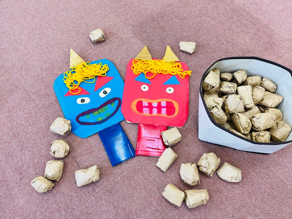 そして鬼が出てきたら…そりゃあもう必死で豆を投げまくっていた子どもたちでした(^^)